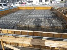 10月24日 鉄筋工事がほぼ完了しました! この状態で(財)住宅保証機構さんが鉄筋検査に来てくれます。 検査後、いよいよコンクリート打設が始まります。 10月25日 打設が始まりました。 10月25日 設計されたコンクリートの厚さを確認しながら慎重に打設を進めていきます。