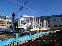 11月14日 建て方が進められる中、たくさんの材木が到着しました。